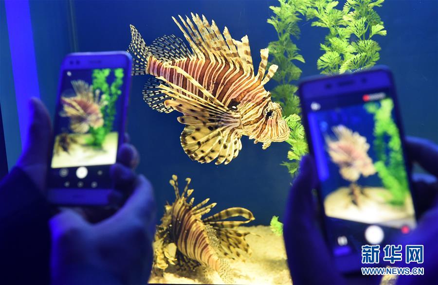 4月29日,游客在山东青岛海底世界“海底小纵队”主题生物展区参观拍摄。 当日是“五一”小长假第一天,人们以各种方式放松心情,欢度假期。新华社记者 李紫恒 摄