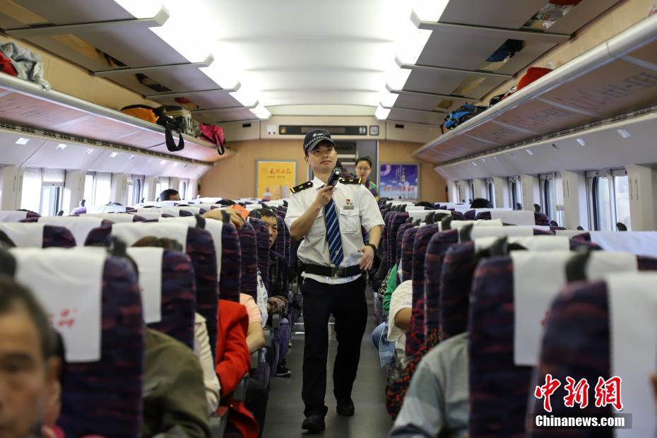 4月30日,“五一”劳动节期间,贵阳北动车运用所90后动车组随车机械师王多维凌晨3:30就已开始一天的工作。从出发前的始发作业:车端检查、车体检查、高压设备检查到行驶途中的巡查作业:司机室检查、客室检查、监控查询。他在作业过程中不放过每一个细节,认真检查自己值乘的车组,及时排除故障,确保节日期间动车安全运行。图为在动车行驶途中对车厢进行巡检。中新社记者 瞿宏伦 摄