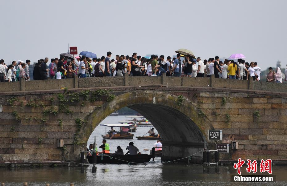 5月1日,西湖断桥挤满了游客。当日是五一小长假最后一天,浙江杭州西湖景区迎来大量的游客,再现“人潮”景观。 中新社记者 王刚 摄