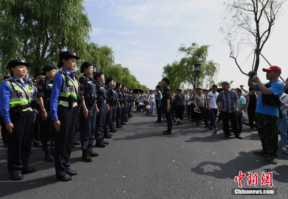 西湖景区迎游客高峰 女子巡逻队成新风景线
