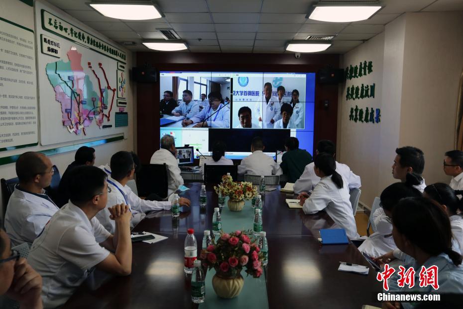 此次公益活动有近200家医疗机构的600余位医务志愿者参与,并前往汶川县威州镇、雁门乡、克枯乡、龙溪乡、绵虒镇等12个乡镇和县医院、县中医院开展爱心公益活动,并对在地震期间致残和因病返贫家庭进行慰问、巡诊和救助,此次公益活动为期5天。图为远程义诊。中新社记者 任海霞 摄