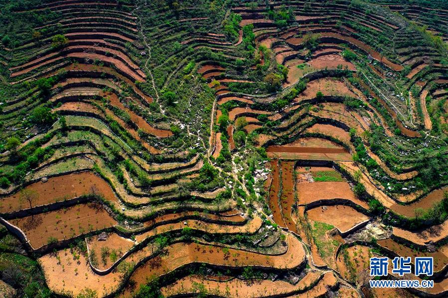 这是5月6日无人机拍摄的涉县关防乡后池村梯田。 新华社记者 王晓 摄