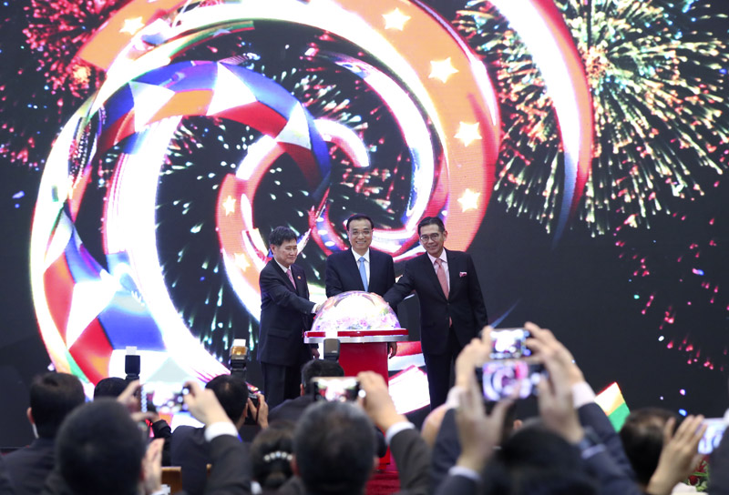当地时间5月7日下午,国务院总理李克强在雅加达东盟秘书处出席中国-东盟建立战略伙伴关系15周年庆祝活动启动仪式并发表主旨讲话。随后,李克强同东盟秘书长林玉辉、东盟轮值主席国新加坡常驻代表陈汉成共同启动中国-东盟建立战略伙伴关系15周年庆祝活动。
