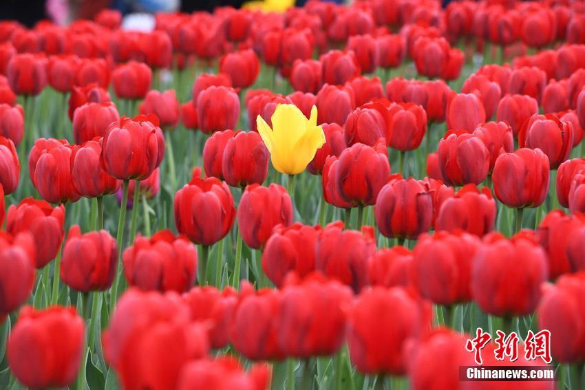 5月10日,在长春市长春公园内,近百万株郁金香花竞相开放,引大批游客前来参观。据介绍,公园内共有58个品种,近百万株郁金香,这些花全部是从荷兰引进的,栽植面积达1.3公顷。 张瑶 摄