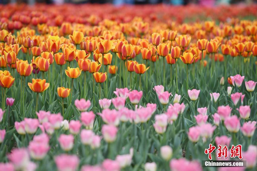 5月10日,在长春市长春公园内,近百万株郁金香花竞相开放,引大批游客前来参观。据介绍,公园内共有58个品种,近百万株郁金香,这些花全部是从荷兰引进的,栽植面积达1.3公顷。 张瑶 摄