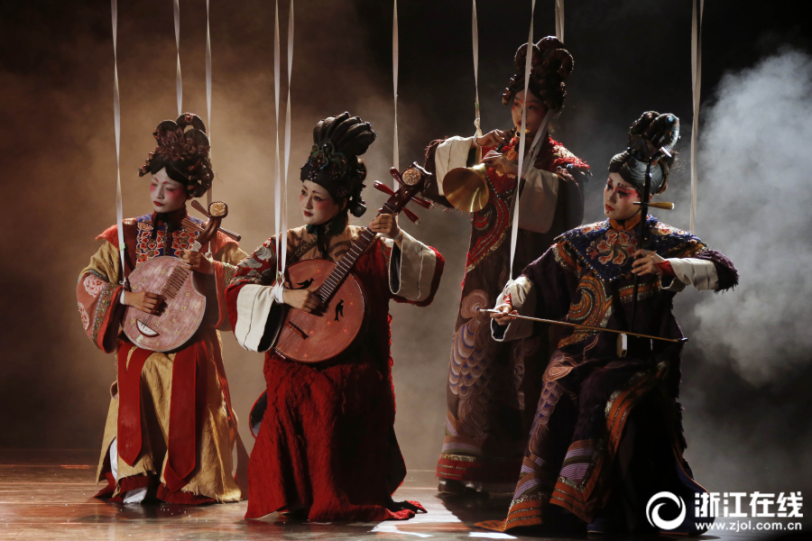 全剧分为四幕,共14个篇章。首次以艺术形式呈现了“人类与海洋”的场景,展现了人类“与海为伴,向海而生”的拼搏、包容精神。作为首部海洋题材大型舞台剧作品,以海洋文化为核心元素,将原汁原味的文积淀经过艺术加工后,在舞台上精彩呈现,让观众在第一时间进入沉浸式现场体验,感受美轮美奂的视觉享受。(浙江在线记者 吴煌 拍友 卜姝洁 摄)
