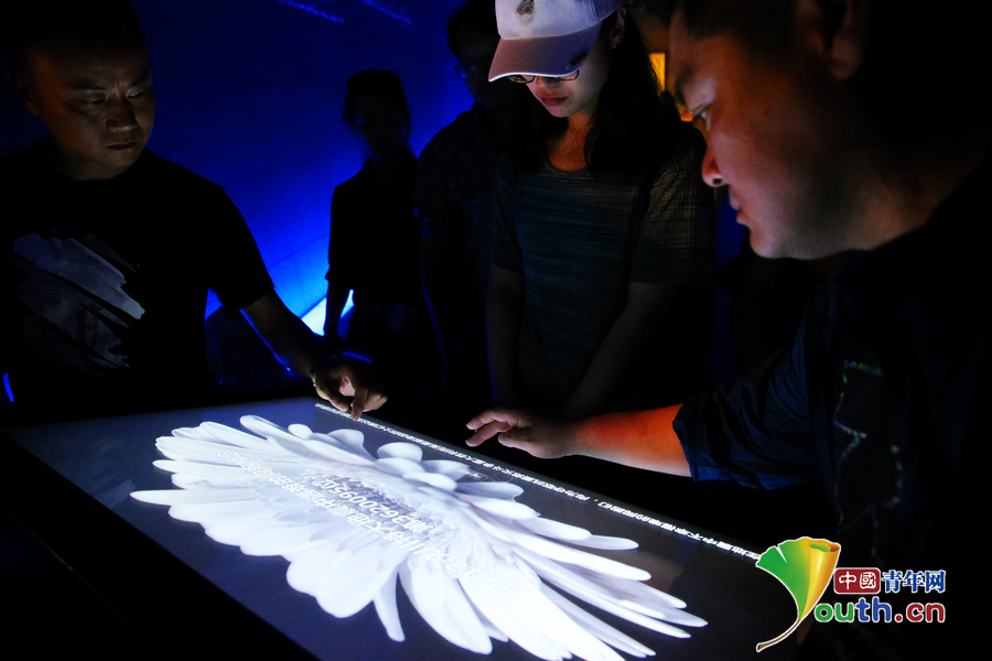 5·12汶川特大地震纪念馆内,参观者通过电子屏幕为逝者献花。高寒 摄