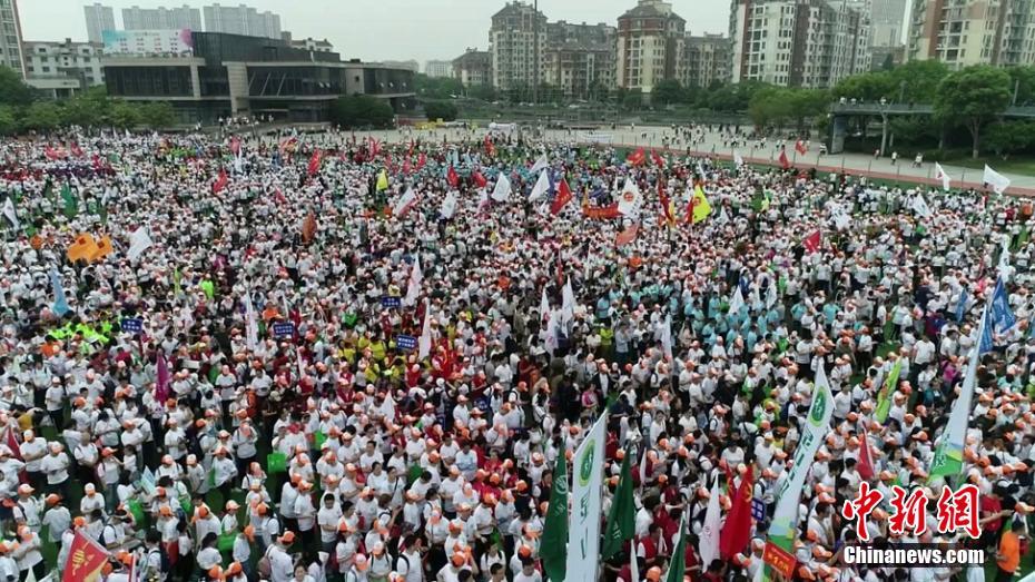 5万人昆山街头徒步 汇成蜿蜒“巨龙”蔚为壮观
