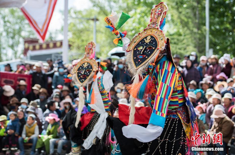 藏戏演员正在表演藏戏《苏吉尼玛》。中新社记者 何蓬磊 摄
