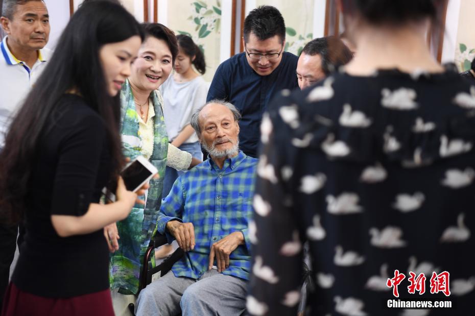 5月13日,第十四届中国(深圳)国际文化产业博览交易会进入第四天,恰逢周末,深圳市民纷纷走进会展中心展馆欣赏多门类艺术展。国家一级美术师王子武来到文博会艺术品馆参观。中新社记者 陈文 摄