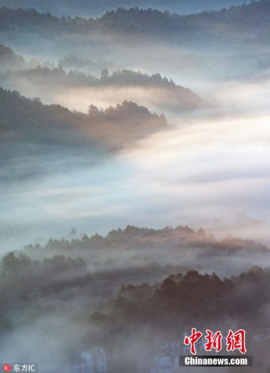 2018年5月15日,中国四大道教圣地之一的安徽休宁齐云山出现壮美云海。当日清晨,齐云山旭日东升,云海蒸腾,整个齐云山景区在初夏阳光的照射下,唯美壮观,令游人沉醉。 王运选 摄 图片来源:东方IC 版权作品 请勿转载