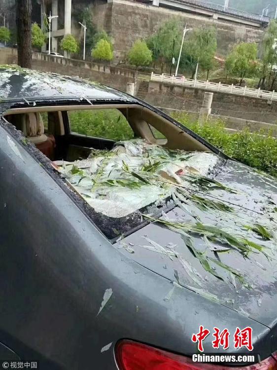 从当地网友拍摄的视频和照片上记者看到,冰雹犹如鸡蛋般大小,砸到地上啪啪作响。冰雹下降过程结束后,一些停在街道上的汽车车玻璃被砸碎,有的车辆引擎盖被冰雹砸出了坑,还有一些树木被砸伤。 华商报陈永辉 摄 图片来源:视觉中国