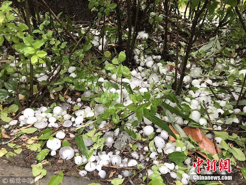 陕西商南突降特大冰雹 最大直径4厘米砸碎车窗