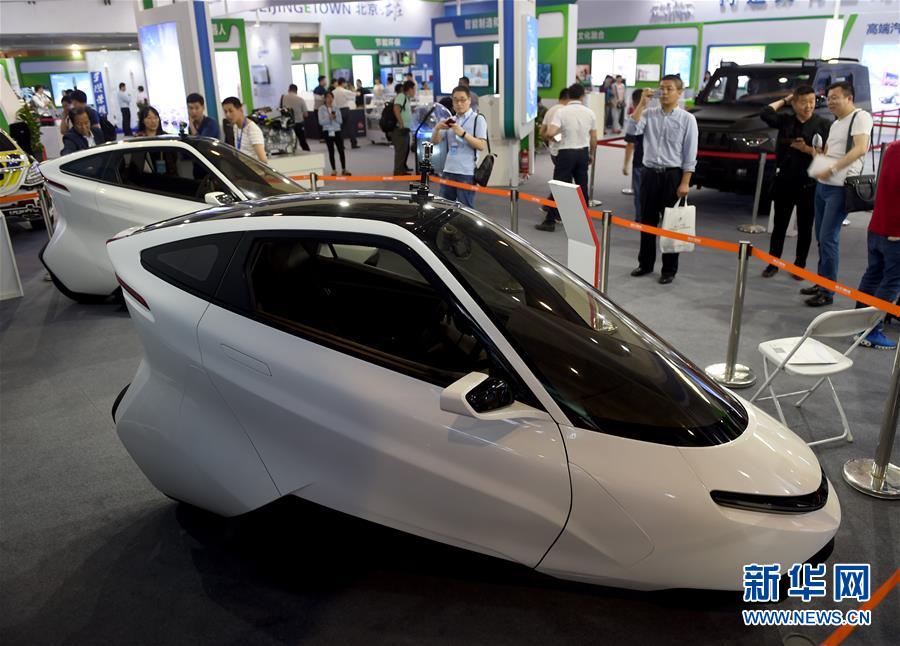 5月17日,观众在了解一款可使用家用电充电、不受充电桩束缚的两轮电动汽车。新华社记者罗晓光摄