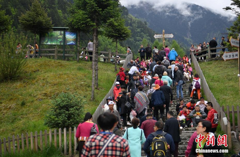 九寨沟景区内的诺日朗中心站游人如织。刘忠俊 摄
