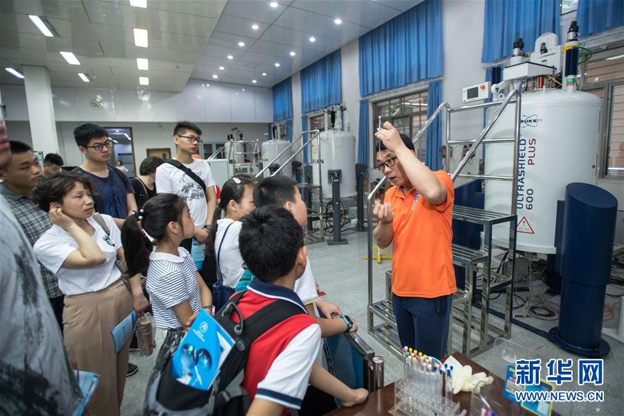 5月20日,在中科院武汉物理与数学研究所,工作人员向前来参观的市民介绍核磁共振波谱仪的工作原理。新华社记者熊琦摄