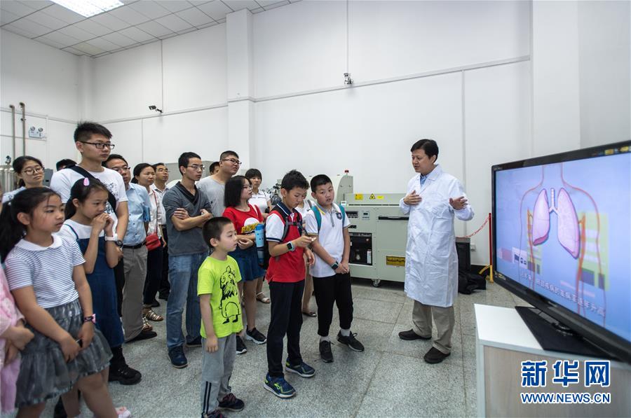 5月20日,在中科院武汉物理与数学研究所,工作人员向前来参观的市民展示人体肺部气体磁共振成像视频。新华社记者熊琦摄