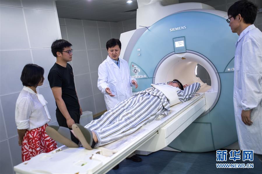 5月20日,在中科院武汉物理与数学研究所,工作人员向参观者介绍人体肺部气体磁共振成像设备。新华社记者熊琦摄