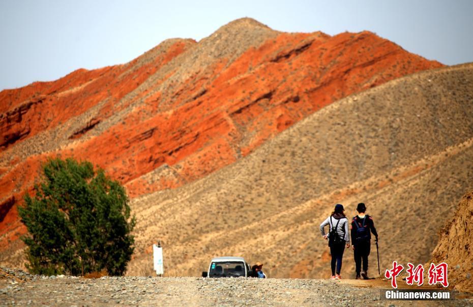 5月19日,甘肃张掖户外运动爱好者从肃南裕固族自治县悬堂寺丹霞经过。当日,以“探寻石窟魅力·体验藏乡风情·游览地质奇观”为主题的户外徒步活动在该县祁丰乡文殊寺景区启幕。来自张掖、酒泉、嘉峪关等周边地区800余人参加了本次活动。