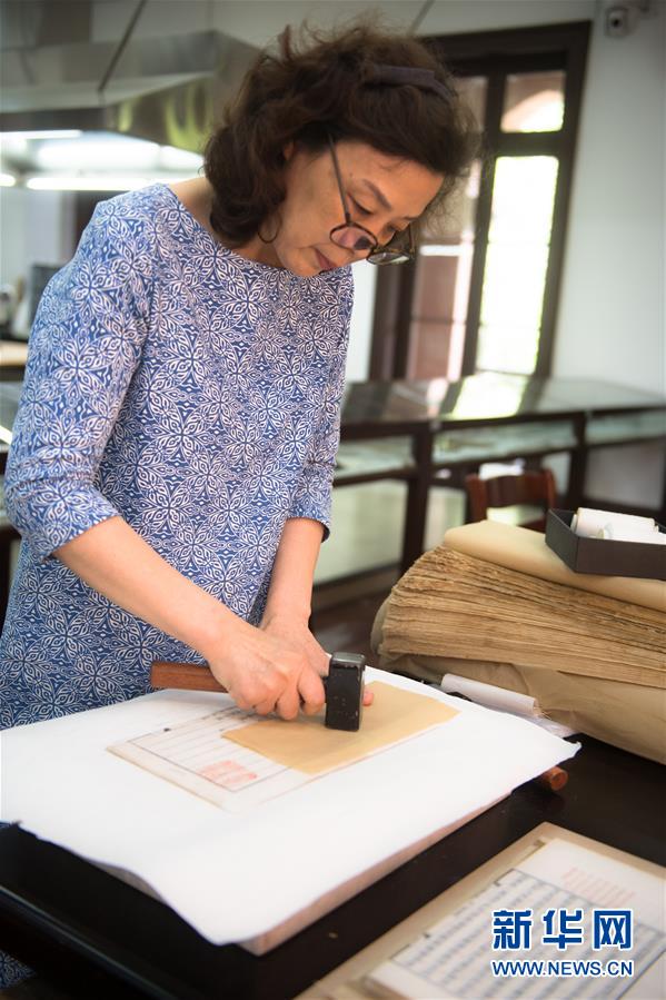 5月23日,阎静书在修补书籍。新华社记者翁忻旸摄