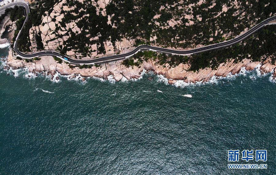 5月21日无人机拍摄的崂山滨海观景公路。新华社记者 李紫恒 摄