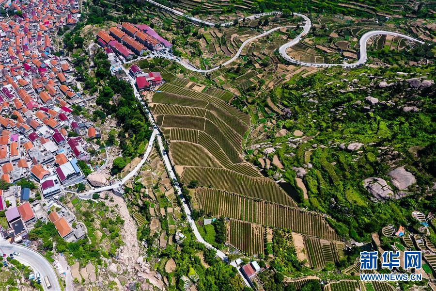 5月19日无人机拍摄的崂山脚下的茶园和村庄。新华社记者 郭绪雷摄