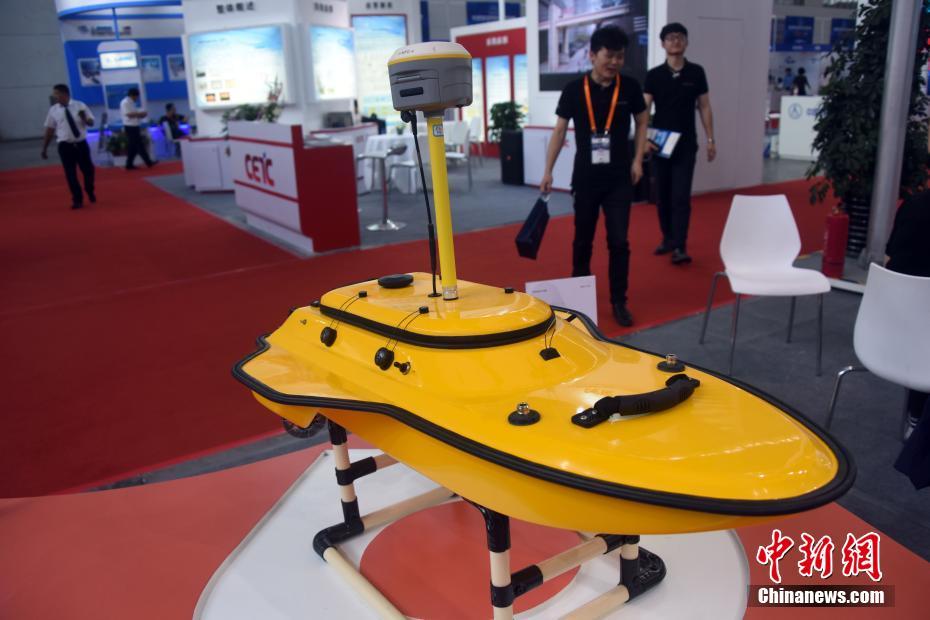 5月24日,一款基于卫星导航技术的无人船亮相展览现场。据介绍,该无人船可接收中国北斗、美国GPS、欧洲伽利略和俄罗斯格罗纳斯等全球四大卫星导航系统信号。当日,第九届中国卫星导航学术年会继续在哈尔滨举行,同期举办的第九届中国卫星导航技术与应用成果展,吸引众多业内外人士前来参观。 中新社记者 孙自法 摄