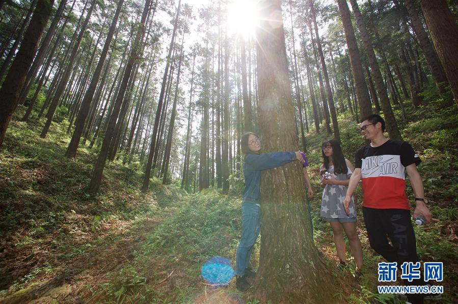5月24日,前来洋口林场实训的南京林业大学学生在杉木实验林内考察学习。新华社记者 姜克红 摄