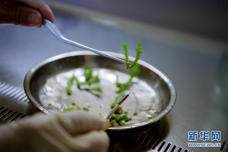 5月24日,工作人员在洋口林场杉木组培苗生产基地内培育杉木苗。新华社记者 姜克红 摄
