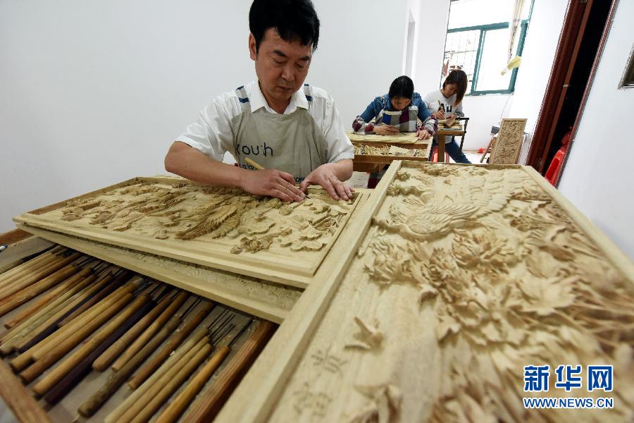 2013年8月,余江木雕被列入江西省非物质文化遗产名录。自此,江西余江县积极创建雕刻创业示范街、雕刻创业示范园等雕刻产业平台,吸引一大批余江籍雕刻人才返乡创业。洪雁球返乡后,于2009年创办江西雁球工艺品有限公司,帮助40多名返乡雕刻工人实现在家门口就业。据悉,目前余江县从事木雕的3万多人中,有3000多人是返乡创业人员。2017年余江县雕刻产业实现主营业务收入16.3亿元。 新华社记者 宋振平摄