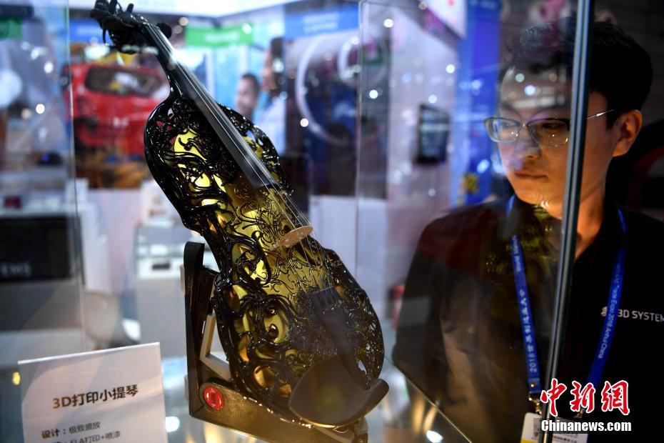 5月25日, 3D打印小提琴在展馆内引参观者驻足观赏。当日,2018世界制造业大会暨中国国际徽商大会在合肥国际会展中心开幕。本次世界制造业大会的展览展示面积达43000平方米,设有综合展、国际智能制造业展、国内智能制造业展、安徽进出口商品精品展、金融服务业展、安徽人力资源展等六大展区。 中新社记者 韩苏原 摄