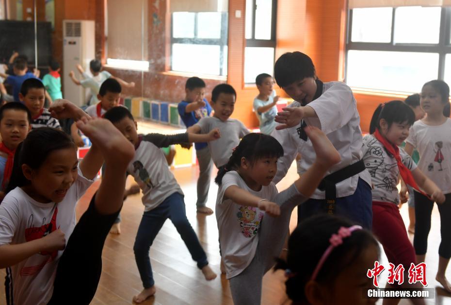 陈燕亭在福州中山小学授课。陈燕亭在福州中山小学授课,指导学生正确动作。 吕明 摄