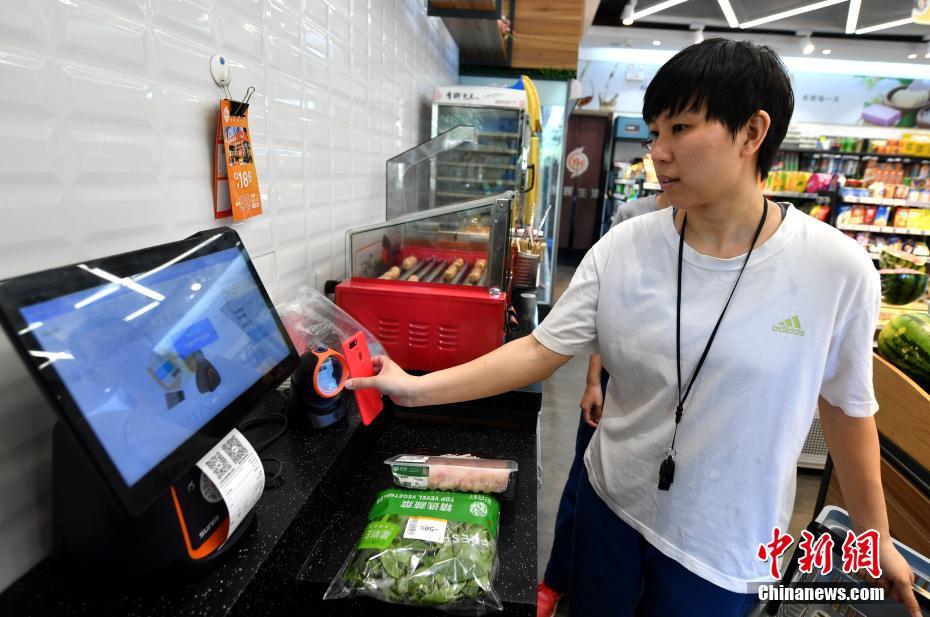 陈燕亭在福州一家无人超市内购物并用支付宝自助结账。大陆的“无现金”支付、共享经济等让她颇感新鲜,她笑说回台湾常常忘带钱包上街,准备付账才恍然大悟。 吕明 摄