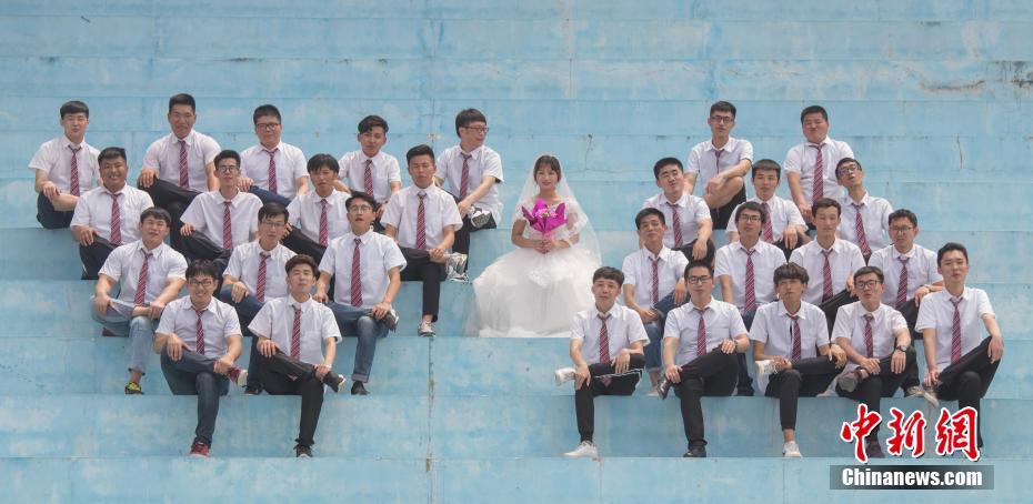 特别毕业纪念 全班男生“簇拥”唯一女生穿婚纱拍毕业照
