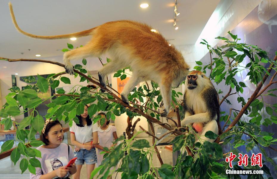 5月27日,各类飞禽走兽活灵活现地出现在民众的眼前。正在福建博物院展出的第四届中国动物标本大赛的257件惟妙惟肖的标本作品集中对外开放,让民众如进入“动物世界”。本次大赛汇集了全国标本制作企业、博物馆、大专院校、研究所等60多家单位参加,标本涵盖哺乳类、鸟类、爬行类、两栖类、鱼类等动物类群的皮张和骨骼标本。主办方希望通过标本大赛,向公众展现动物世界的美丽,宣传生物多样性和生态文明,借鉴吸收国际标本制作先进经验,提高中国野生动植物标本制作的整体水平。图为大赛参赛作品展吸引了许多民众前来观赏。 中新社记者 张斌 摄