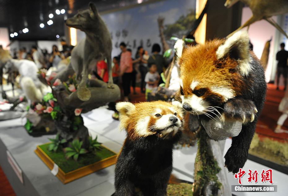 5月27日,各类飞禽走兽活灵活现地出现在民众的眼前。正在福建博物院展出的第四届中国动物标本大赛的257件惟妙惟肖的标本作品集中对外开放,让民众如进入“动物世界”。本次大赛汇集了全国标本制作企业、博物馆、大专院校、研究所等60多家单位参加,标本涵盖哺乳类、鸟类、爬行类、两栖类、鱼类等动物类群的皮张和骨骼标本。主办方希望通过标本大赛,向公众展现动物世界的美丽,宣传生物多样性和生态文明,借鉴吸收国际标本制作先进经验,提高中国野生动植物标本制作的整体水平。图为大赛参赛作品小熊猫。 中新社记者 张斌 摄