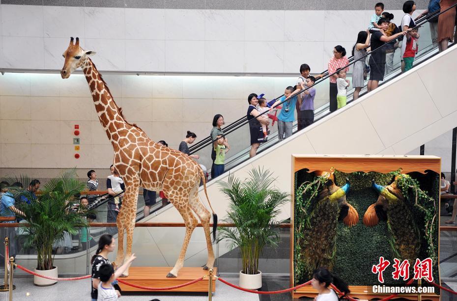 5月27日,各类飞禽走兽活灵活现地出现在民众的眼前。正在福建博物院展出的第四届中国动物标本大赛的257件惟妙惟肖的标本作品集中对外开放,让民众如进入“动物世界”。本次大赛汇集了全国标本制作企业、博物馆、大专院校、研究所等60多家单位参加,标本涵盖哺乳类、鸟类、爬行类、两栖类、鱼类等动物类群的皮张和骨骼标本。主办方希望通过标本大赛,向公众展现动物世界的美丽,宣传生物多样性和生态文明,借鉴吸收国际标本制作先进经验,提高中国野生动植物标本制作的整体水平。图为大赛参赛作品展吸引了许多民众前来观赏。 中新社记者 张斌 摄