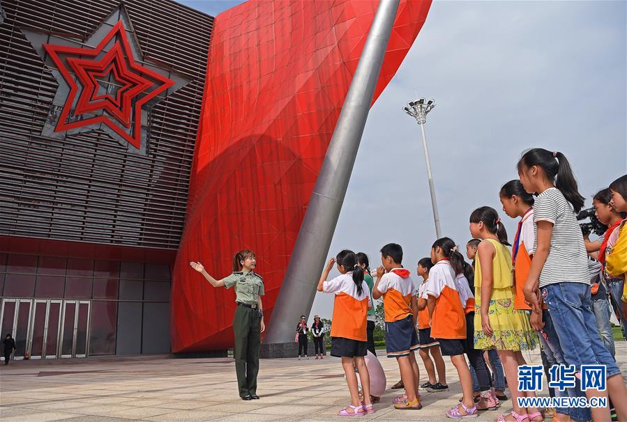 5月28日,孩子们在南昌军事装备展示中心参观。新华社记者 万象 摄