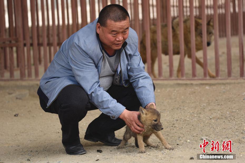 救助站工作人员对一只狼崽进行身体检查。 高宏善 摄