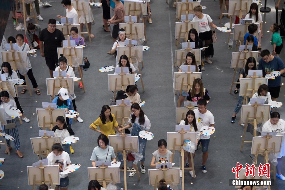 150名画师共绘梵高著名油画作品《星月夜》。韦亮 摄