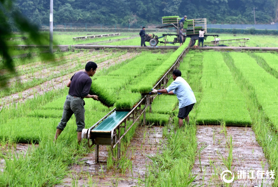 武义县一育秧工厂员工忙着为订单农户起运单季稻秧苗。