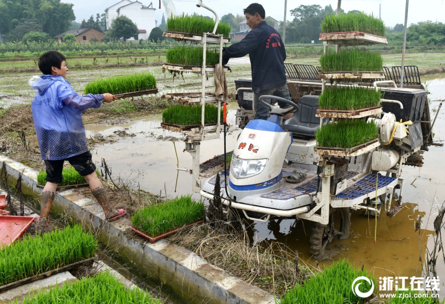 武义县王宅镇陶宅村种粮大户方晓辉忙着插种单季稻。