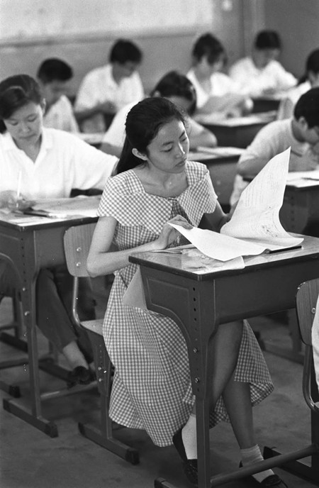1996年7月7日,全国普通高等学校招生考试进入第一天。北京四中考生在应试。1996年中国高等教育试行并轨招生,高校学费开始增加。(新华社记者 李俊东 摄)