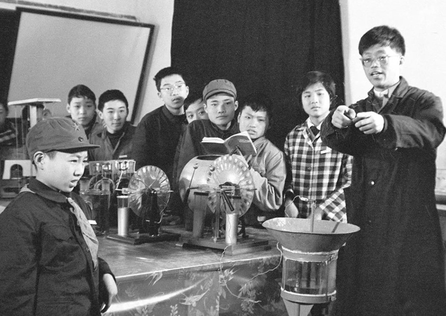 1977年,中国科技大学少年班的学生在上物理实验课。(新华社发)