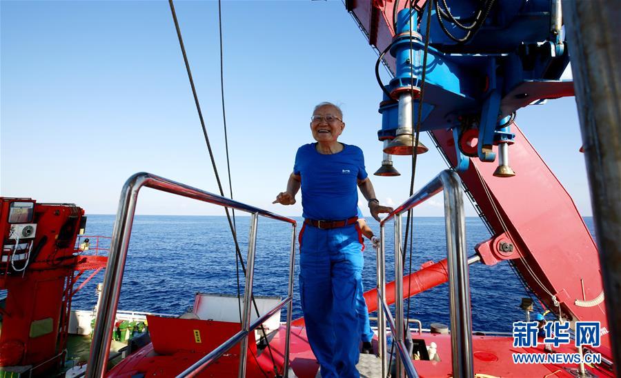 2018年5月13日,汪品先院士从“深海勇士”号载人舱走向母船。新华社记者 张建松 摄