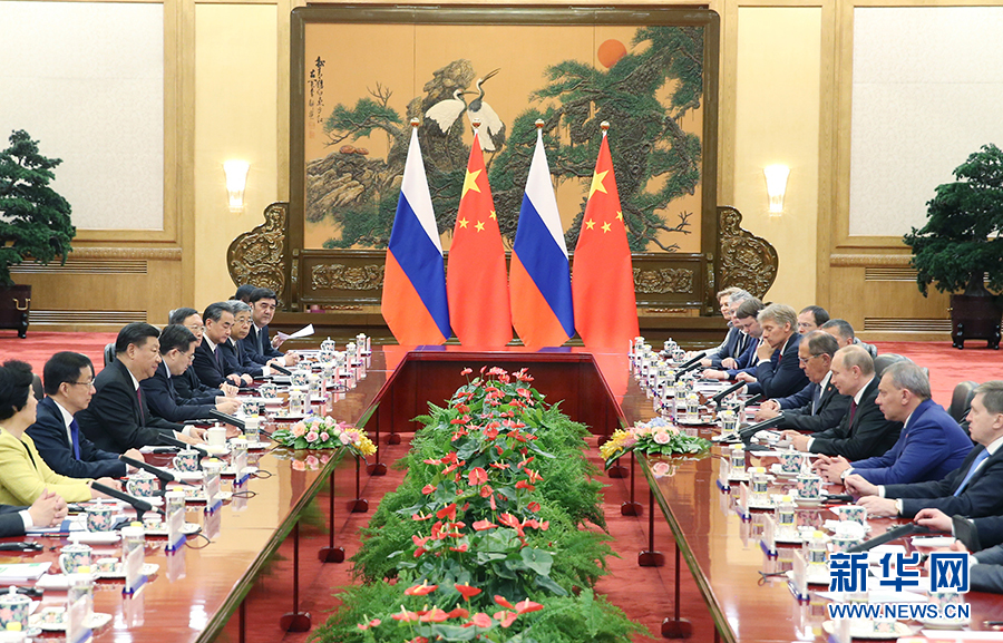 6月8日,国家主席习近平在北京人民大会堂同俄罗斯总统普京举行会谈。 新华社记者 姚大伟 摄