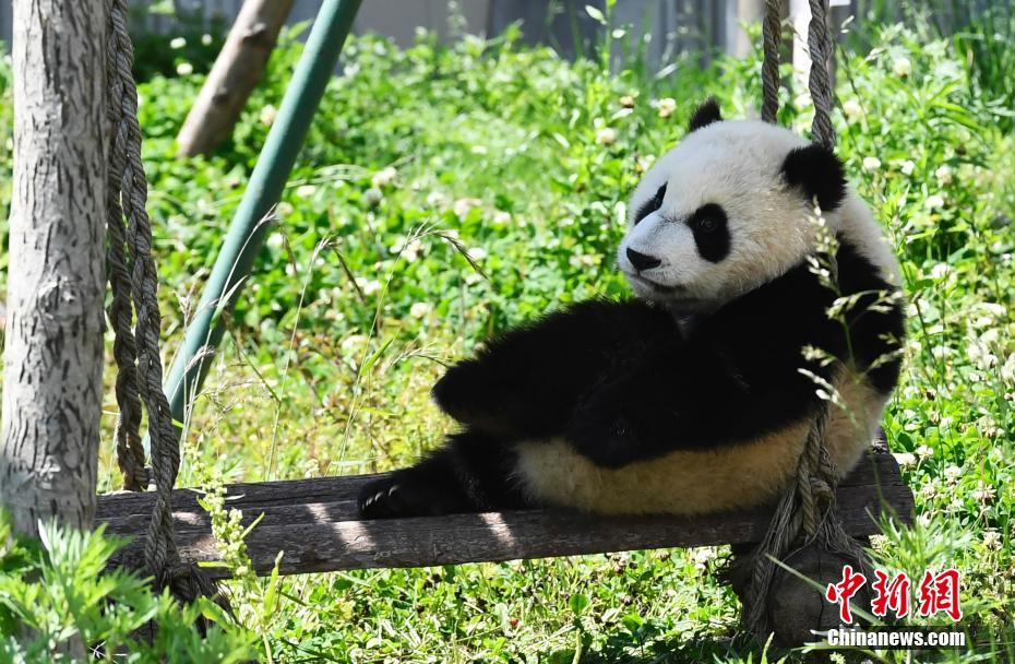 大熊猫宝宝在熊猫“幼儿园”里悠闲自得