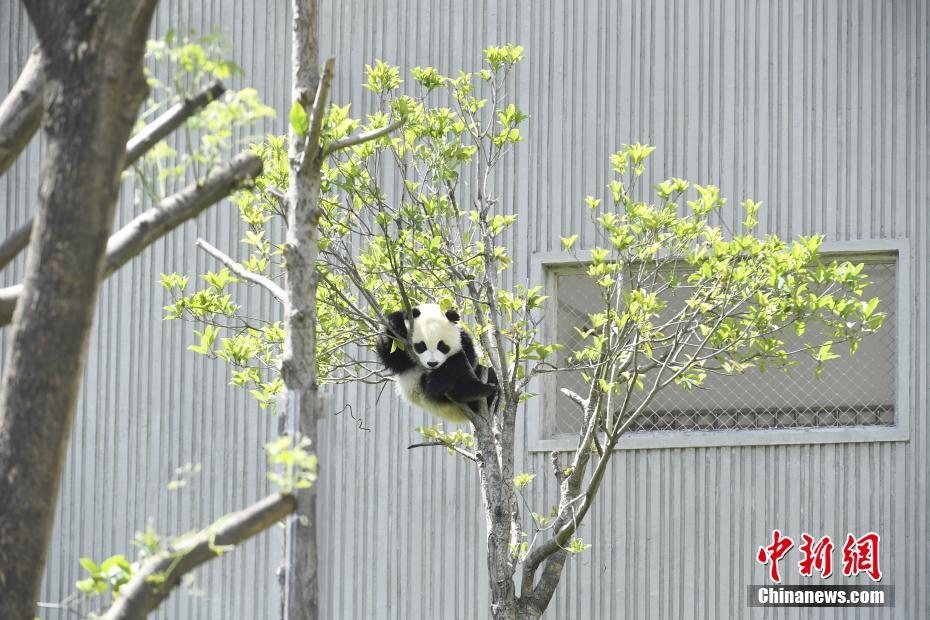 大熊猫宝宝在熊猫“幼儿园”里悠闲自得