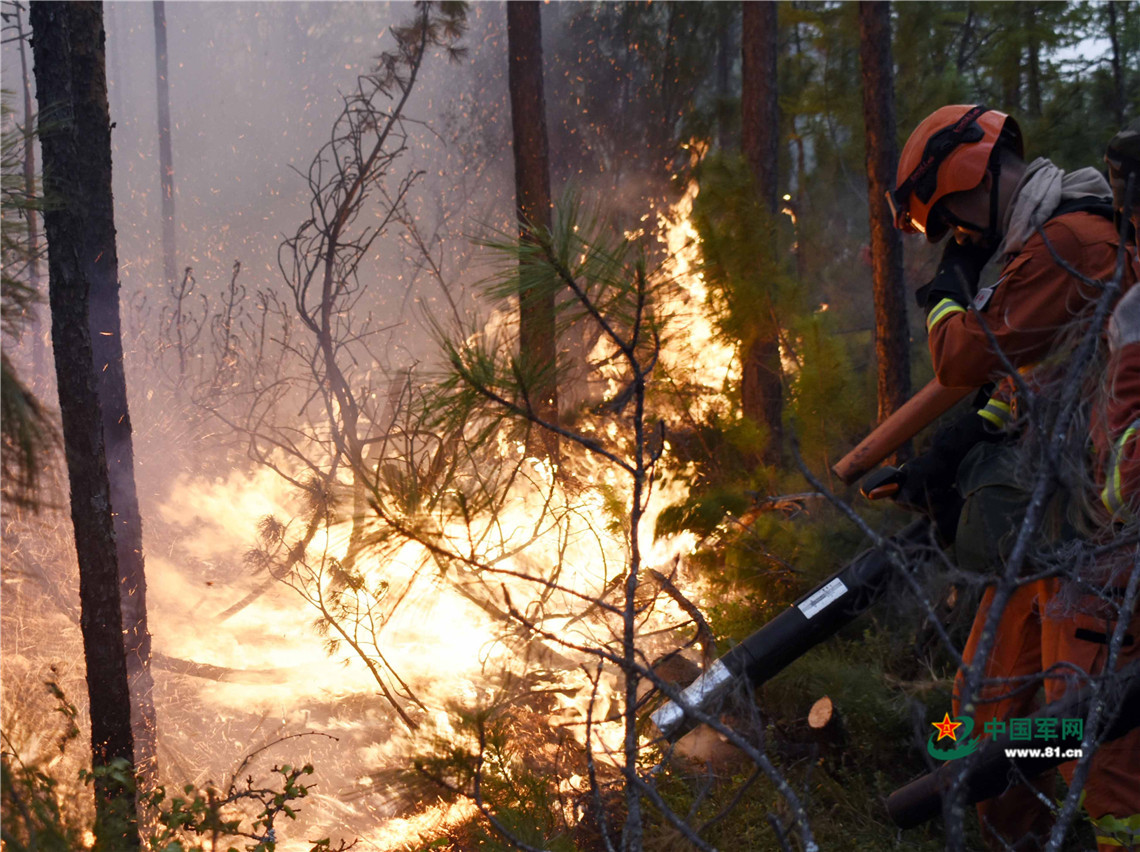武警森林部队官兵在黑龙江呼中国家级自然保护区内扑救林火。于珂摄