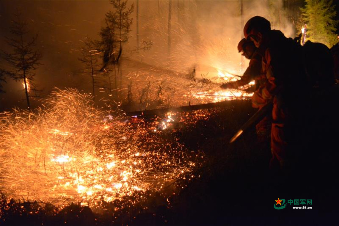 武警森林部队官兵在汗马国家级自然保护区进行扑火作业。